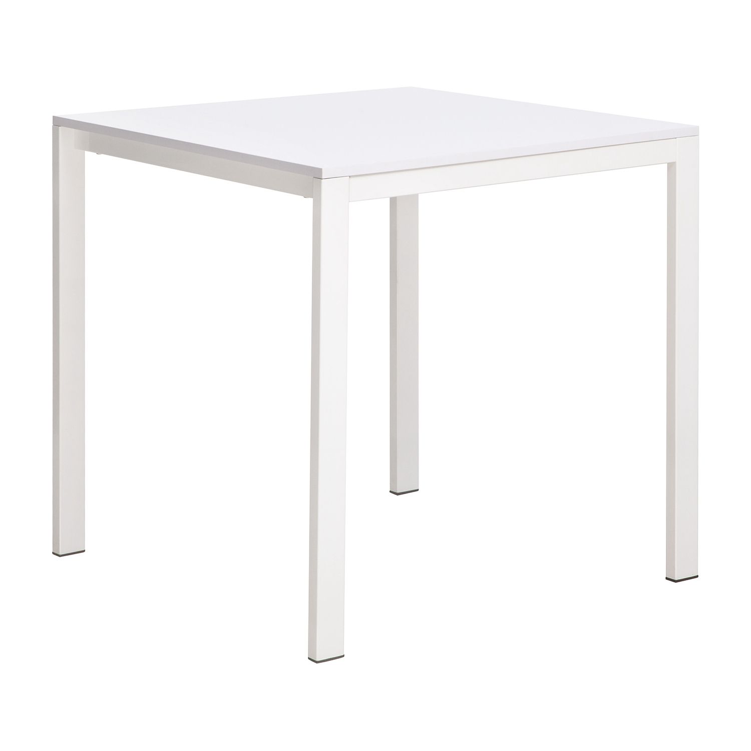 Moderní a praktický jídelní stůl má kovové nohy, které zajišťují jeho stabilitu a hladkou melaminovou vrchní desku.