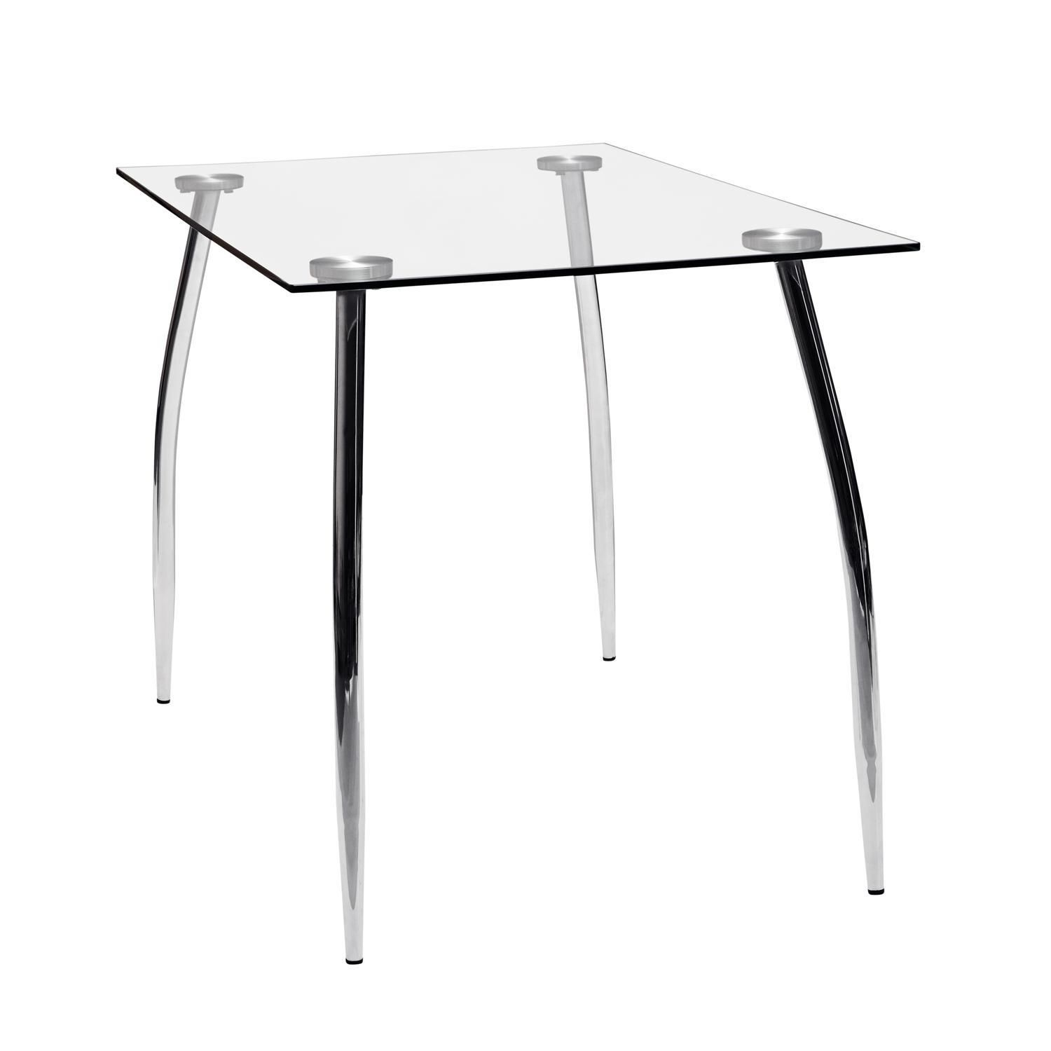 Moderní a elegantní jídelní stůl je vyrobený z čirého tvrzeného skla a kovových nožek s povrchovou úpravou chrom.