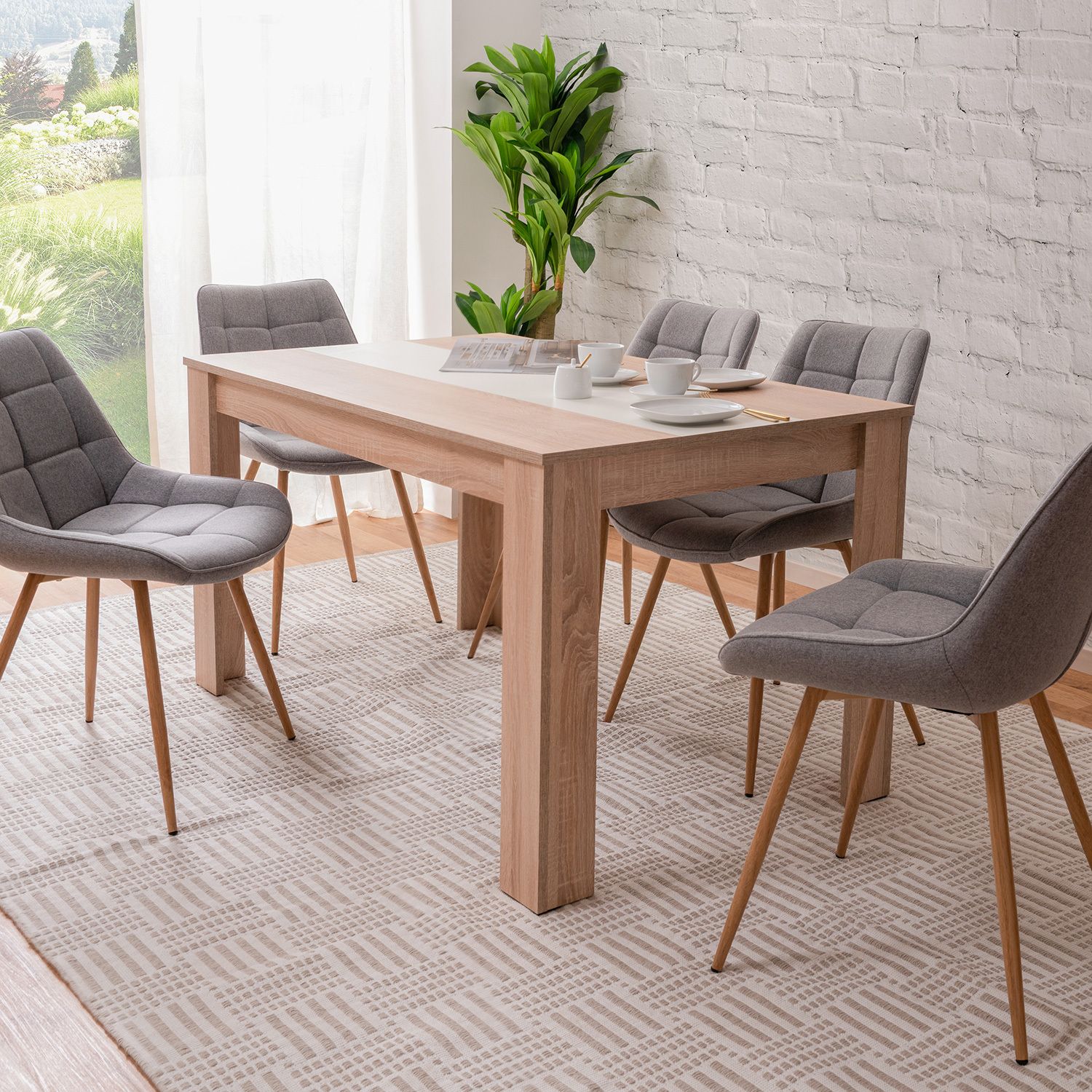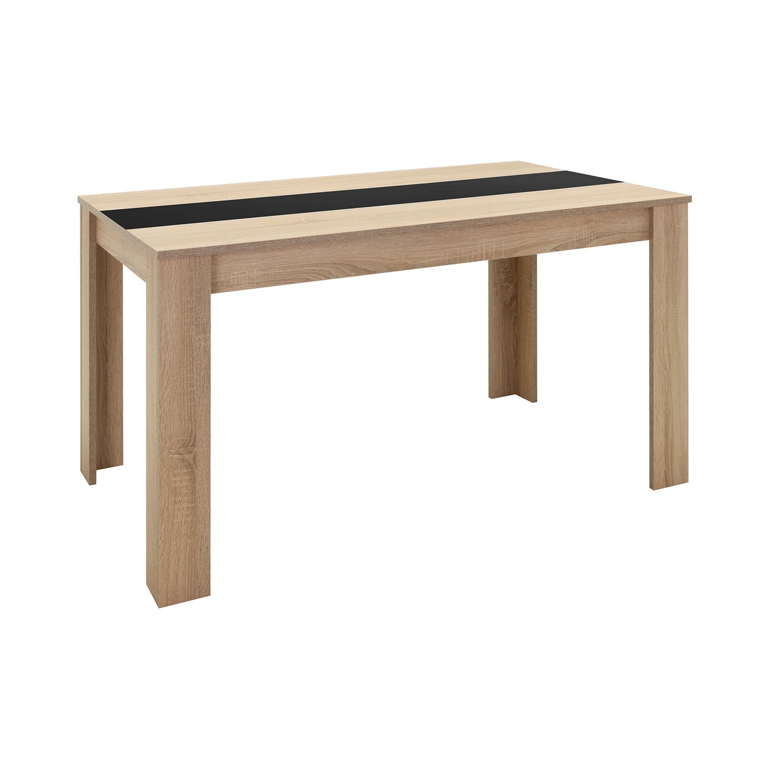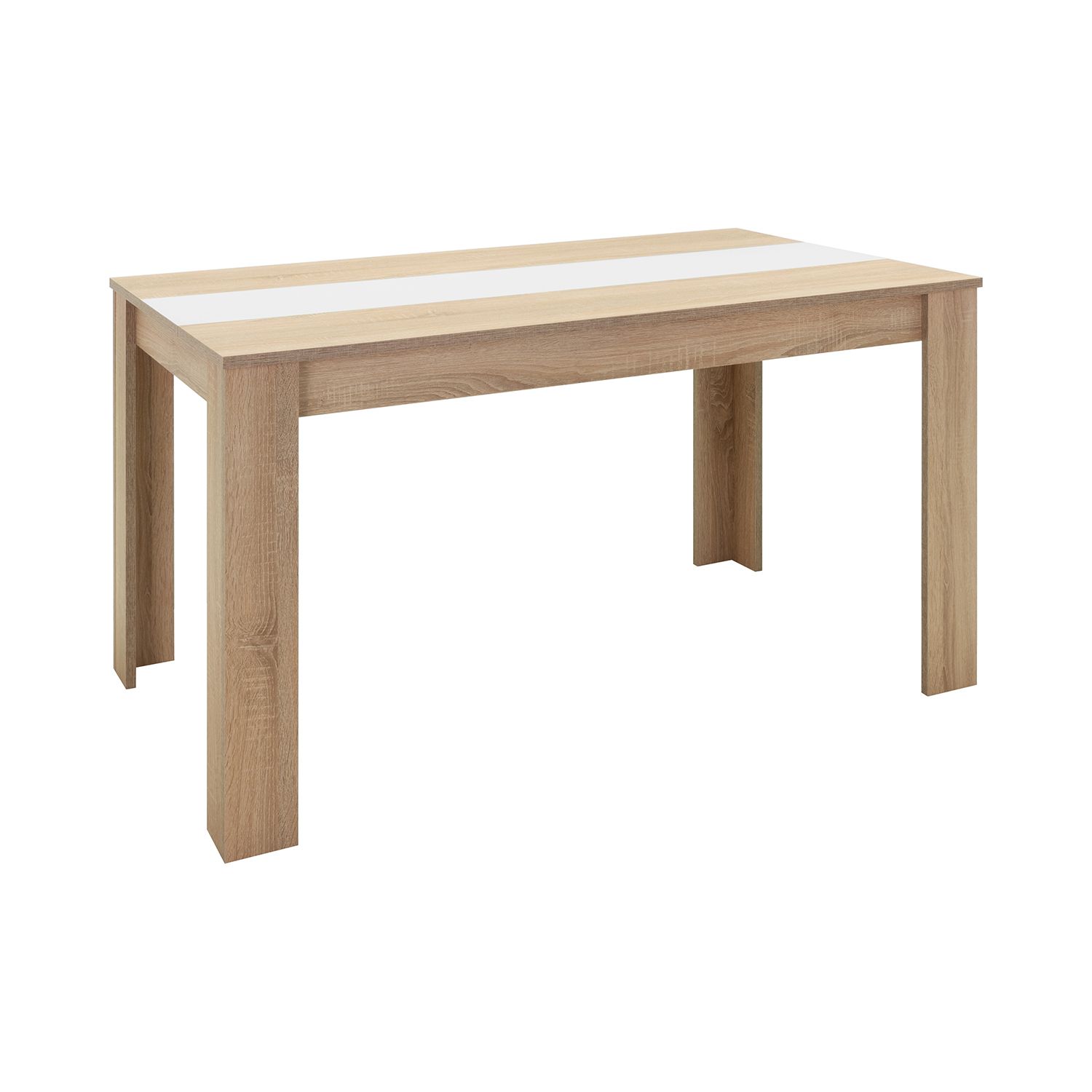 Moderní, praktický a elegantní jídelní stůl je vyrobený v barvě dub sonoma, prostřední díl je oboustraný a Vy si můžete libovolně zvolit bílou nebo černou variantu.
