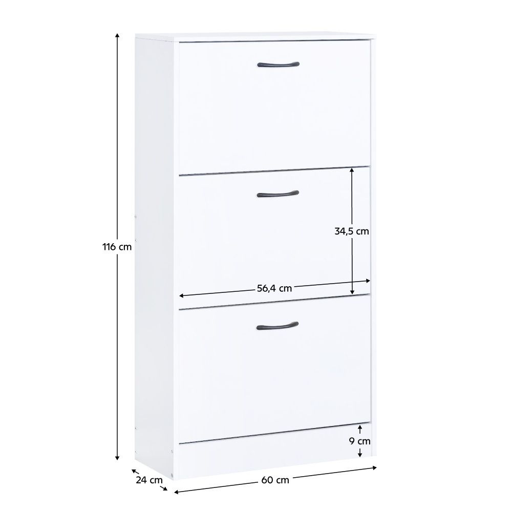 Moderní a praktický třířadový výklopný botník se vyrabí v provedení - bílá