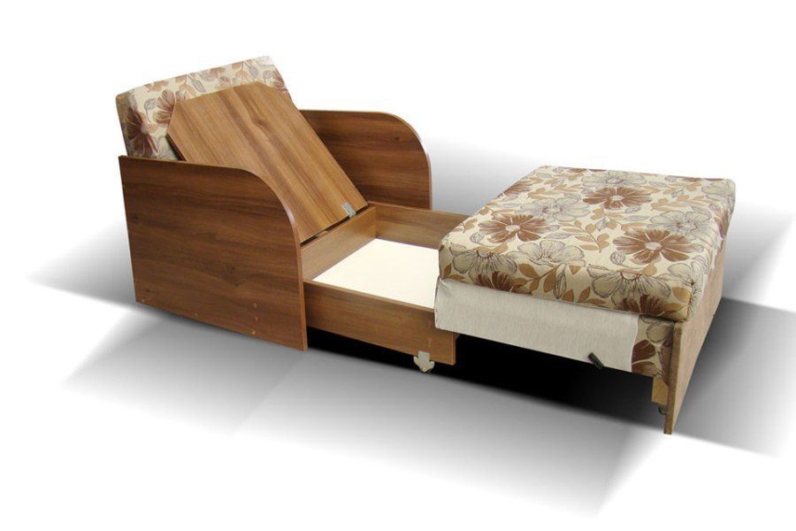Pohodlné a kvalitní rozkládací křeslo s úložným prostorem na příležitostné spaní i pro komfortní sezení,křeslo je vhodné i do menších místností. V barevném provedení  dřevo olše /potah béžovo hnědý.