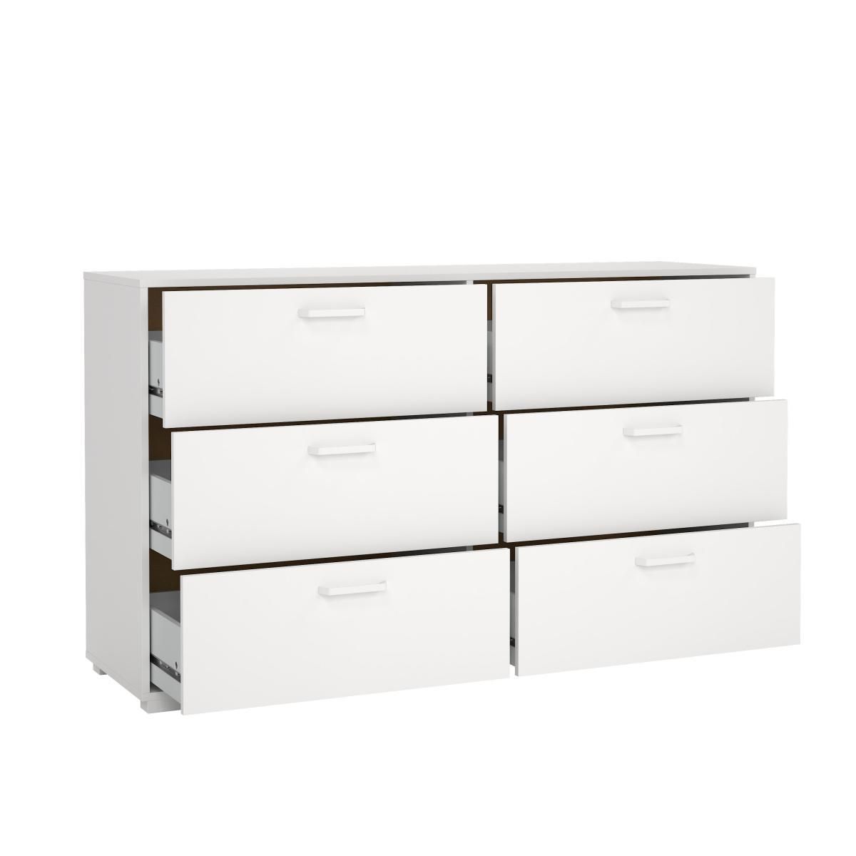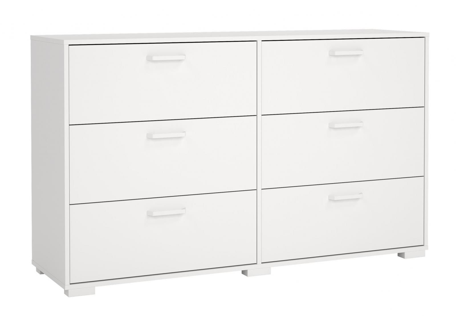 Moderní a praktická komoda Vám poskytne velké množství tolik potřebného úložného prostoru, komoda má kovové úchyty.