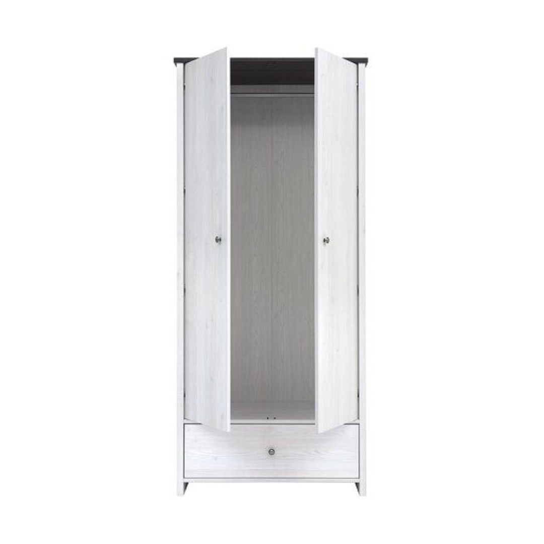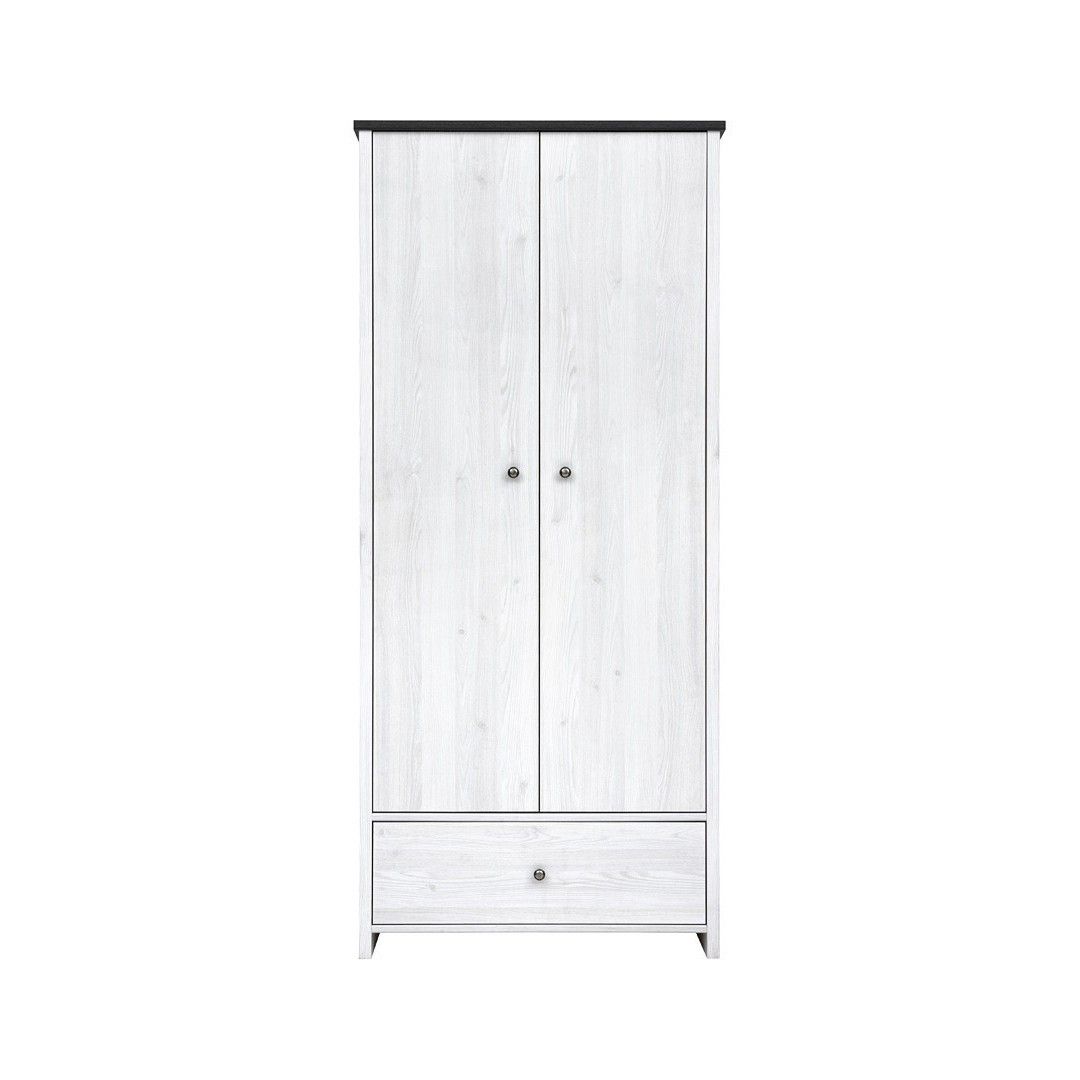Moderní a velmi praktická dvoudvéřová šatní skříň se šuplíkem ve skandinávském stylu. Vyrábí se modřín světlý, horní deska je tmavá borovice larico.