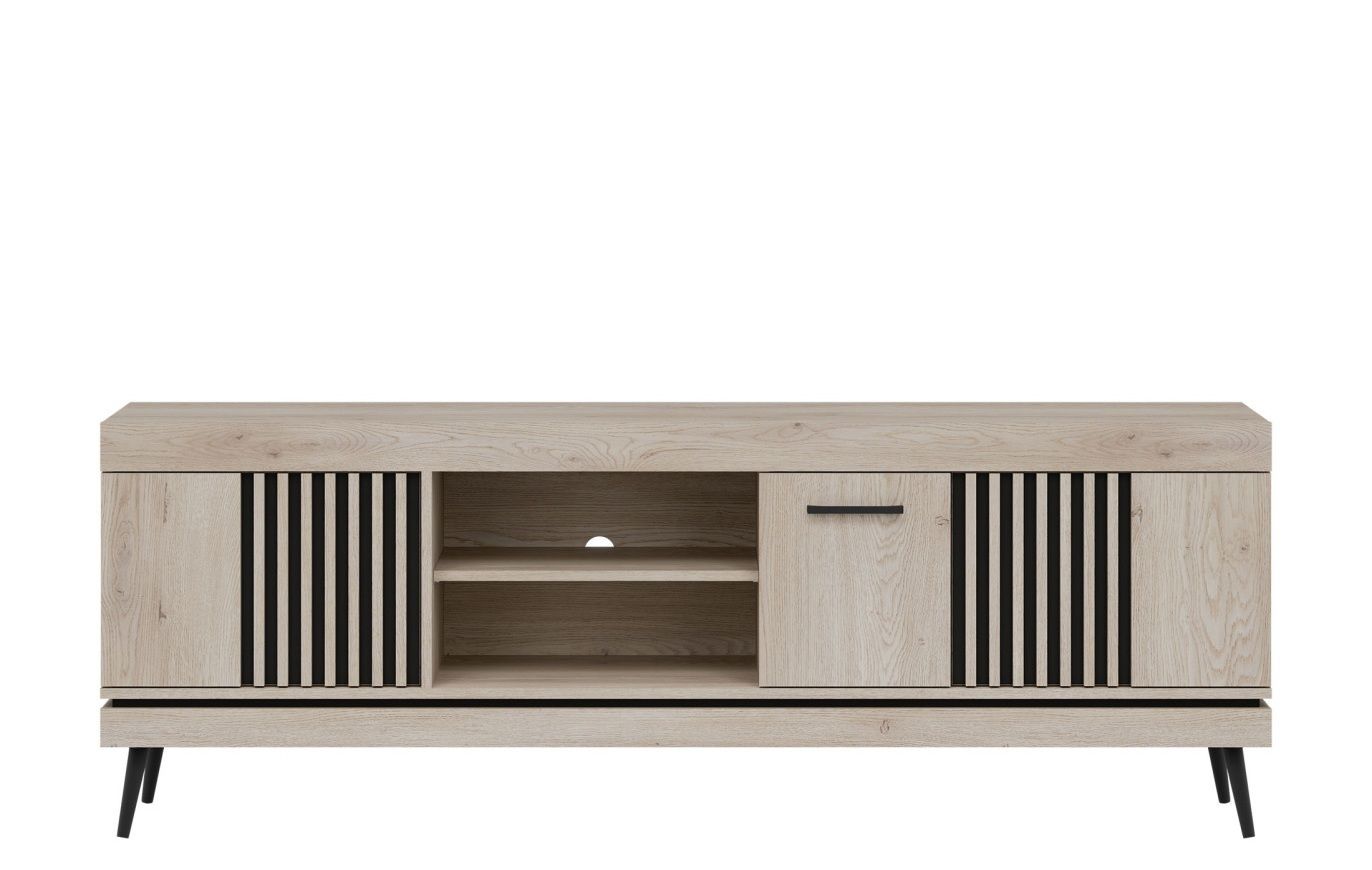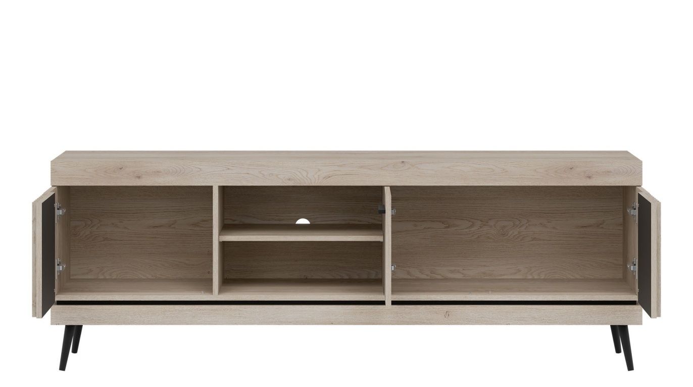 Moderní, kvalitní a praktický televizní stolek s dvěmi dvířky a poličkou uprostřed. Výrábí se dub cremona/černá